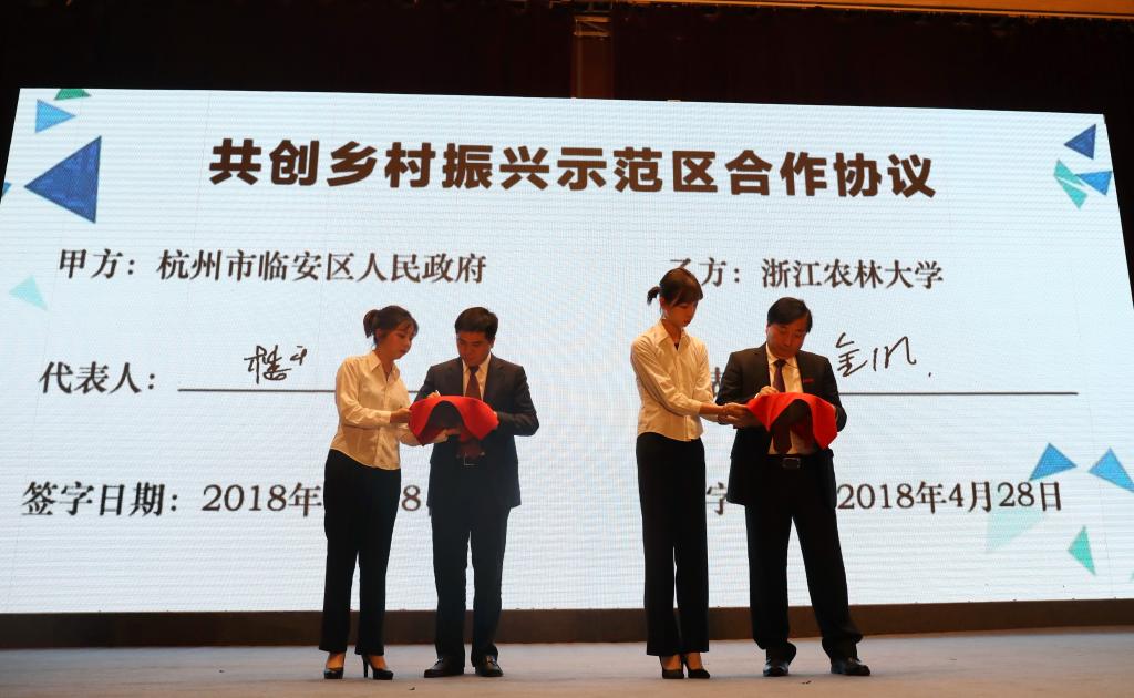 校长应义斌与临安区区长骆安全分别代表校、区签订战略合作协议。根据协议,双方将发挥各自在区域社会经济发展中的独特地位和作用,以乡村振兴、产业发展、人才合作和环境保障为重点,以互惠互补互利、共推共享共赢为原则,共推临安城市国际化、产业现代化、全域景区化,共建国家级创新平台、国家级乡村振兴示范区、国家级大学科技园,共享高端人才资源、科技创新资源、信息政策资源,促进临安经济社会和学校综合实力共同发展。双方成立战略合作委员会,建立合作委员会例会制度、合作沟通协调制度、课题合作研究制度、经费保障制度,确保区校战略合作顺利推进、取得实效。