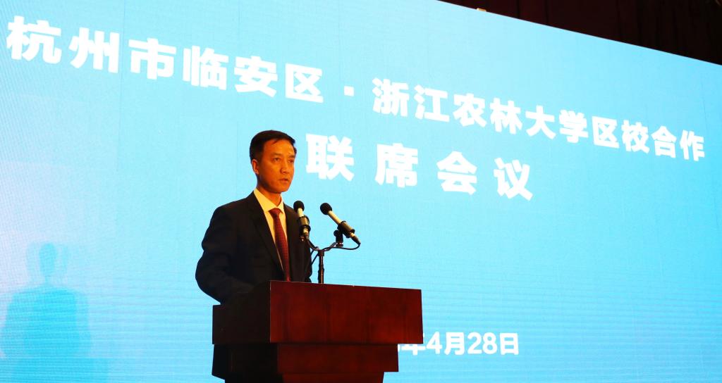校党委书记周国模指出,此次校区全面战略合作,标志着双方合作进入更加紧密务实、更高水平、更广领域的新阶段。希望双方一要传承情谊,共生共荣。农林大学始终与临安人民同呼吸、共命运,共同建设和见证了临安的繁荣发展,与临安人民结下了深厚的友谊。我们要传承接力,续写好校区战略合作的新篇章。二要深度融合,共建共享。此次合作定位高、内容实、保障强,共同描绘了全面深化战略合作的美好蓝图,共同建立校区全面共建共享的长效合作机制。双方要在人才、技术、平台、信息、项目等方面深度融合,互通有无,共建共享。三要面向未来,共创共赢。双方在推进乡村振兴、杭州城西科创大走廊、杭州“名校名院名所”建设等方面,拥有共同的发展机遇和广阔的合作空间。要以此次合作为契机,立足当前,着眼长远,“合力共建农林大,同绘临安新画卷”。