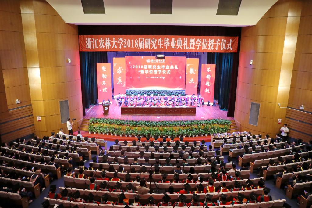 今天,是2018届584名博士研究生和硕士研究生的毕业之期,而后意味着你们即将踏入社会,继续放飞梦想。作为你们的校长和老师,此时此刻,我的心中有一个关于时间的矛盾:我很想时间能够快些走,好让优秀的你们尽快在时代的熔炉里千锤百炼、淬火成钢,早日成为国家、民族、社会之栋梁。同时我也希望时间能够慢点走,因为师生间的情感与不舍,让我和所有老师们不愿如此善良、如此努力、如此优秀的你们离开农林大学这个温暖的“大家庭”。但是,在这你们完成学业并走向未来的重要时刻,我首先还是要向顺利完成学业并全面成长的各位同学表示热烈的祝贺!另外,在座的同学们非常幸运,因为你们在校期间亲自见证了学校在加强内涵建设和提升办学实力上先后取得的一系列重大突破,如:成功获批博士学位授予单位,同时获得五个一级学科博士学位授权点;顺利入选浙江省重点建设高校;植物学与动物科学、工程学2个学科领域同时进入ESI全球1%;获批浙江省属高校首个国家重点实验室等等。在此,我特别想说的是,这些突破性成就的取得与在座各位同学的辛勤努力是分不开的。因此,我代表学校向你们表示衷心的感谢!