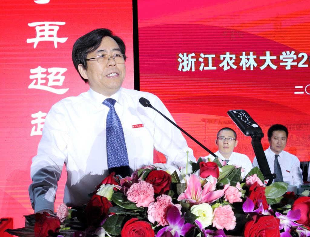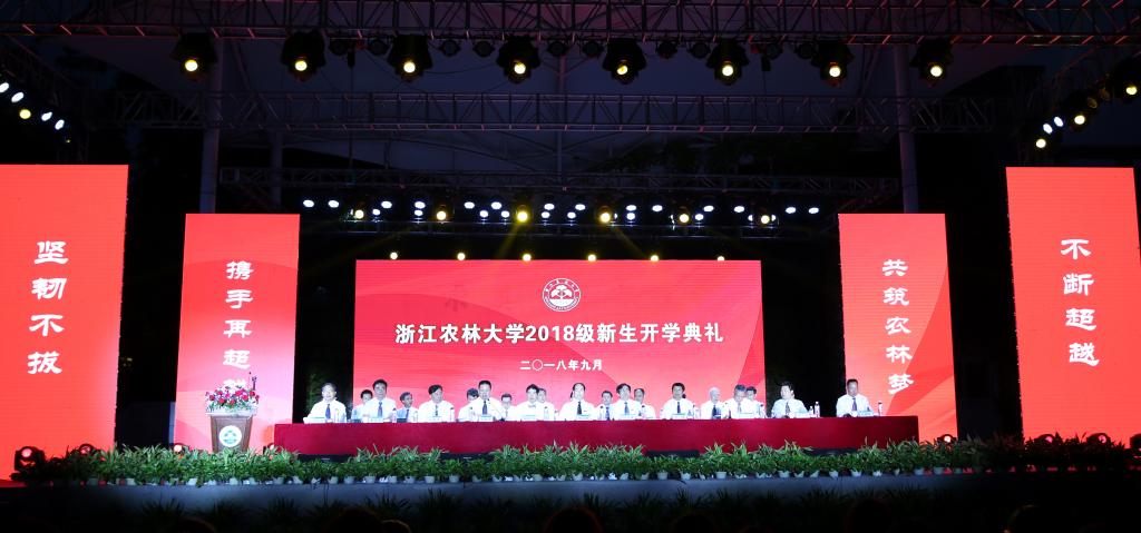 如果与世界诸多具有几百年甚至上千年历史的大学相比,农林大学与在座同学们一样,是一个正值韶华、勃勃英发的青春少年。60年来,它一直像一位知心朋友一般,和每一届学生一同成长、一起进步,与每一届校友唇齿相依、共生共荣。还有40天时间,我们即将迎来农林大学60周年华诞。今天,你们作为农林大学历史的续写者而来;未来,你们还将作为农林大学精神的传承者走向社会。同学们,请你们记住,你们站立的地方,是几代浙农林人为之自信、为之奋斗、为之骄傲的地方。我相信,你们一定能够像农林大学的许多优秀校友一样,在这里成长为一个充满自信的奋斗者!我也特别愿意相信,故事里常常写到的,那些有志于征服星辰大海的舵手,未来一定会涌现在你们的中间!