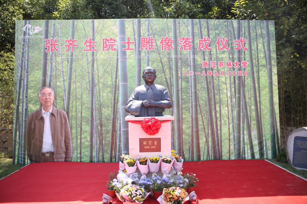 周国模在致辞中深情回顾了张院士不平凡的一生和奋斗事迹。他指出,张齐生院士在科学研究、教书育人和推进竹木产业发展、学校跨越式发展等方面作出了特别巨大的贡献。设立张齐生院士雕像,旨在深切缅怀张院士投身我国和世界竹材加工利用研究与林业教育事业的光辉一生,诚挚感念张院士对学校事业发展作出的卓越贡献。