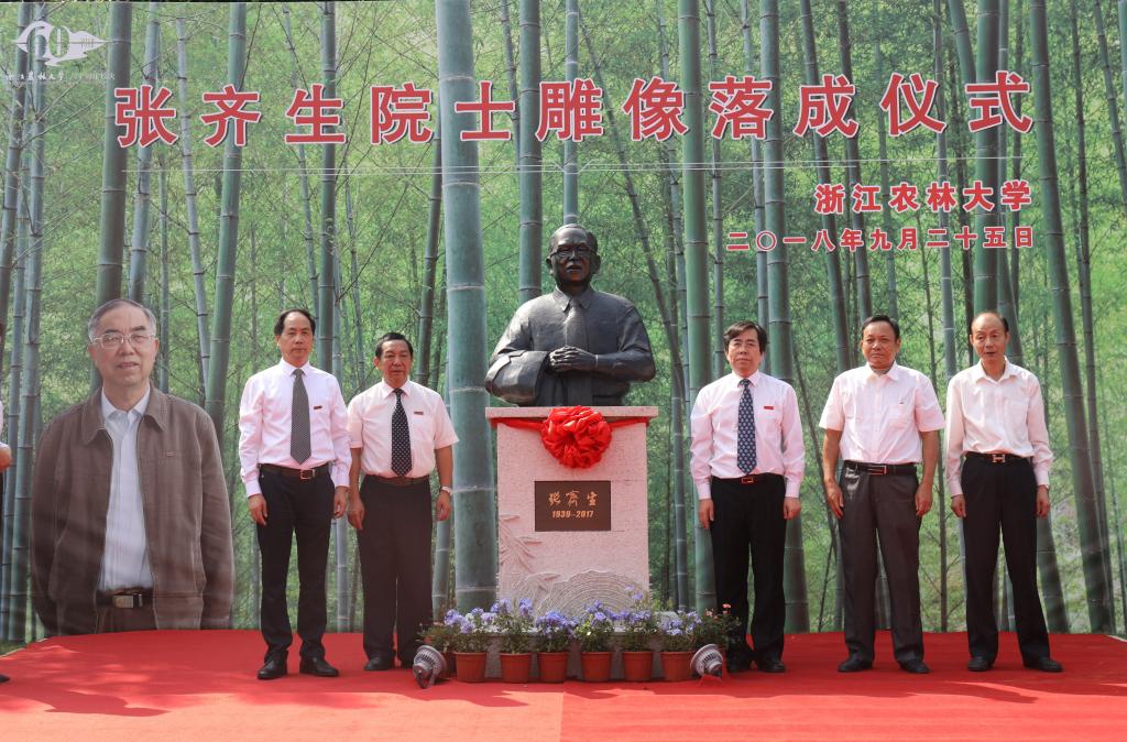 9月25日,作为纪念建校60周年系列活动的重要项目,张齐生院士雕像落成仪式在东湖校区隆重举行。张院士夫人王素珍女士及家属代表,校党委书记周国模,校长应义斌,原校党委书记陈敬佑,校党委副书记史永安,副校长王自勇,原副校长鲍滨福,校党委委员、宣传部部长胡祖吉,张齐生院士生前好友与同事,合作企业代表,学校师生代表300余人参加仪式。仪式由副校长沈希主持。