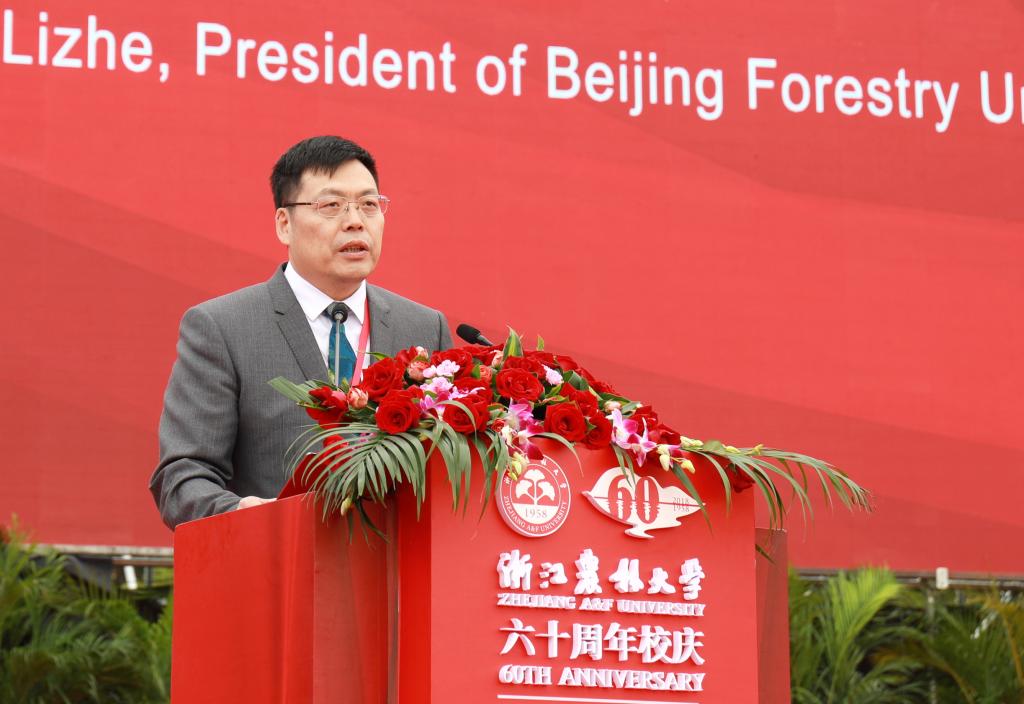 刘东生代表国家林草局向学校全体师生和校友表示热烈祝贺。他指出,学校成为国家林业和草原局与浙江省人民政府共建高校以来,服务林业建设能力、办学水平和综合实力显著提升,取得一系列重大发展成就。学校具有悠久的办学历史和深厚的文化底蕴,是培养高级林业和草原人才的主要院校和林业、草原科技创新的重要基地,在木竹资源开发利用等领域具有明显的学科优势,汇聚了大批优秀林业和草原教育人才。国家林草局将继续发挥省部共建机制的作用,进一步加强对学校的指导和支持,希望学校为建设生态文明和美丽中国做出新的更大的贡献。