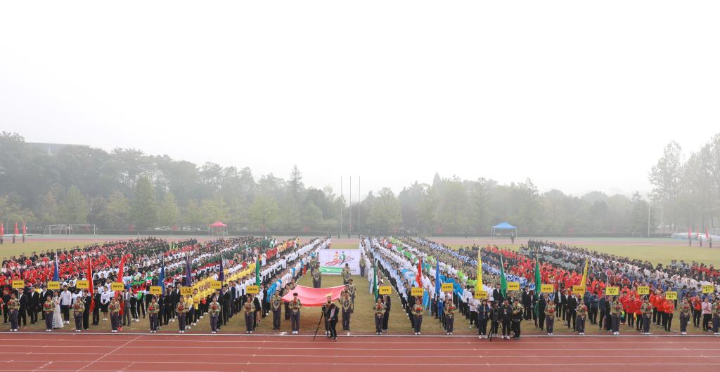 学校相关部门负责人、运动会组委会全体成员出席开闭幕式。本届运动会学生组共有14支代表队927名运动员参加31个项目的比赛,教工组共有17支代表队934名运动员参8个项目的比赛。