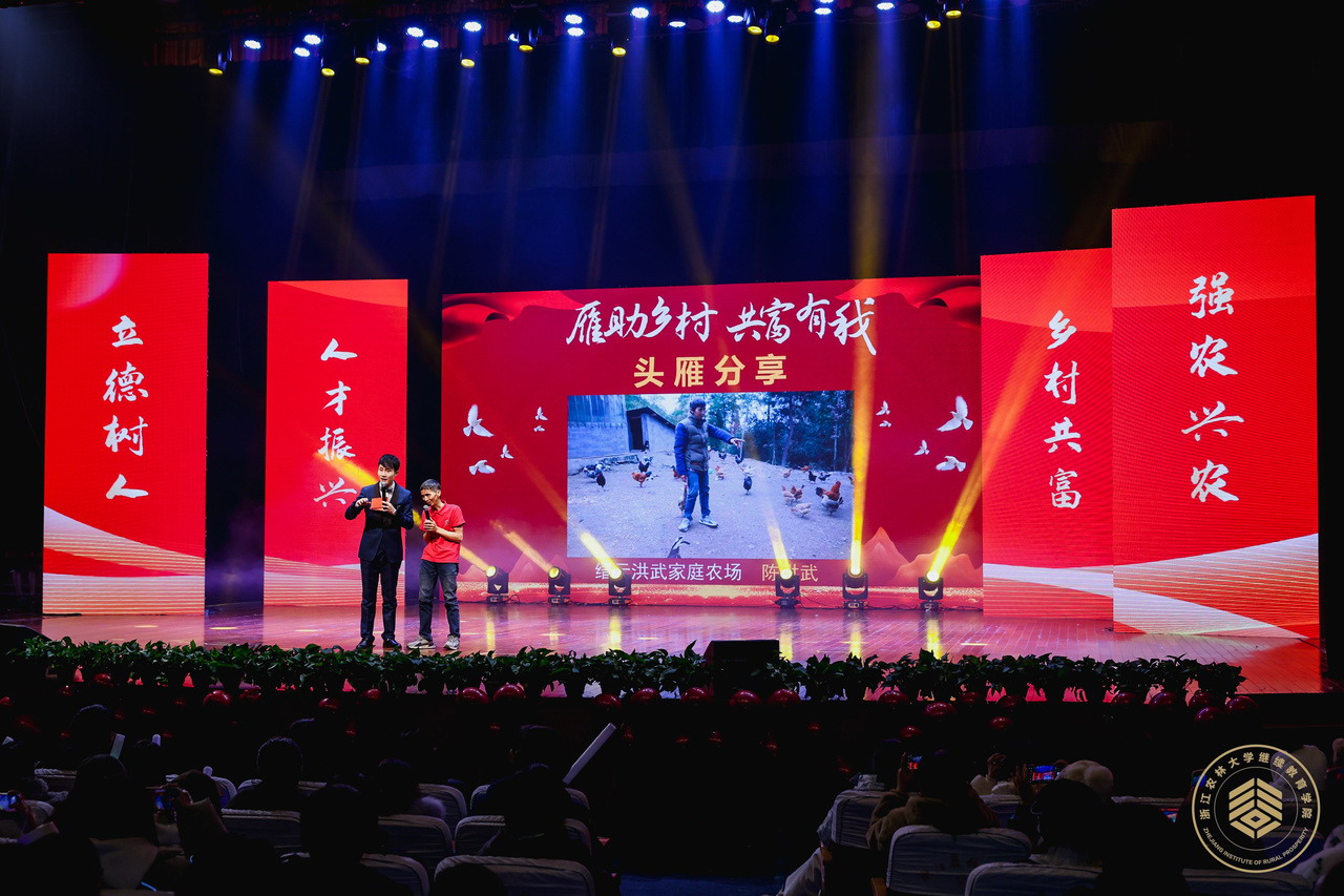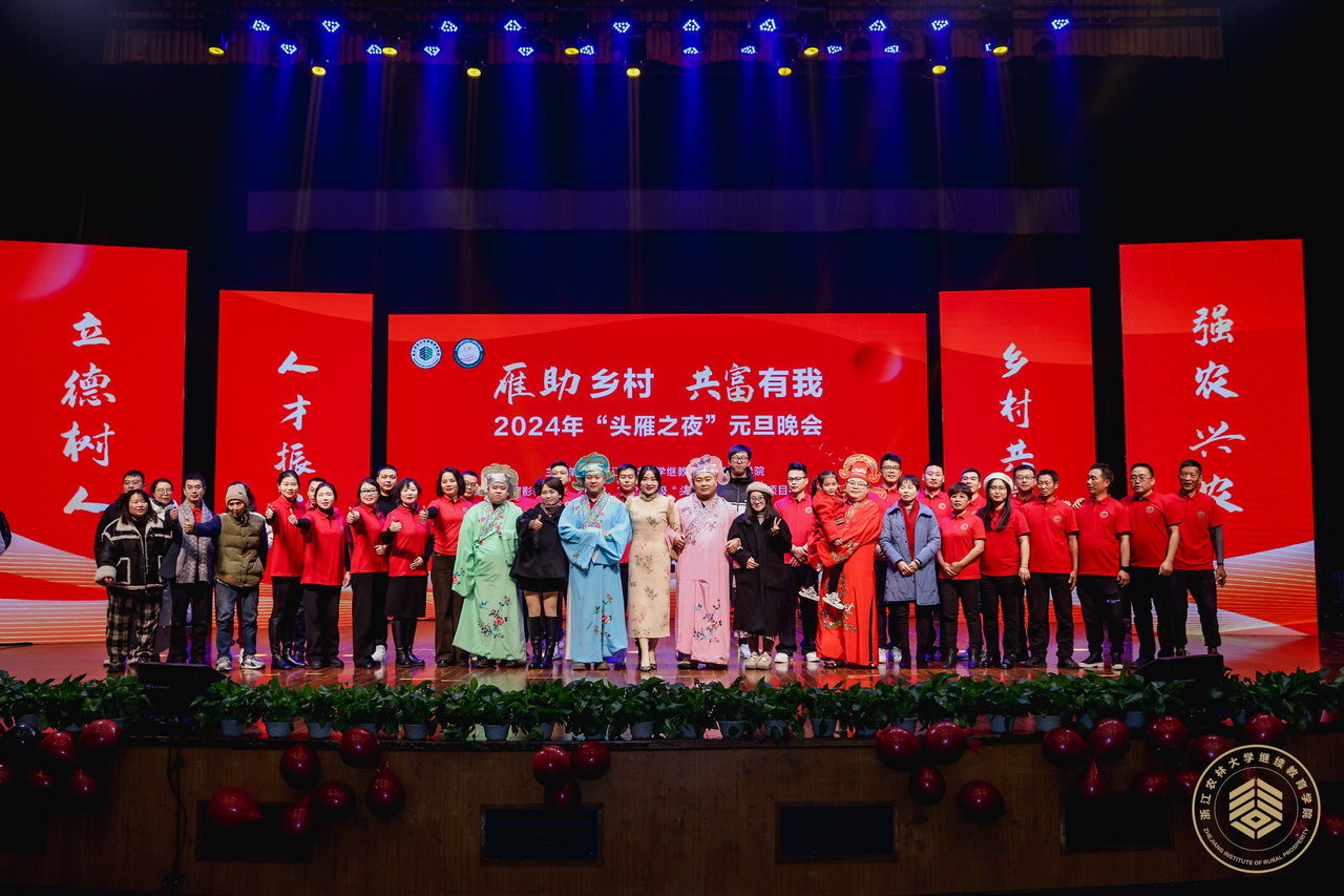 当天的晚会以“雁助乡村·共富有我”为主题,分为坚韧不拔、绿水青山、耕读并进、共创共富四个篇章12个节目,全部来自田间地头,围绕农村农业。歌曲《妈妈的那碗大陈面》介绍了一碗手工面开启乡村致富的故事;舞蹈《美丽畲乡等你来》展示了美丽畲乡的文旅产业发展;走秀《福至》用各种农产品为大家送上了新年祝福;情景剧《头雁去哪儿了》为大家呈现了头雁学员们在乡村振兴的筑梦路上勠力同心、互助奋进的场景。