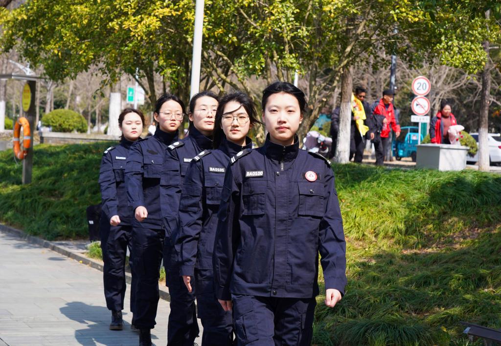 2024年3月8日,beat365官方网站“雷锋班”女子巡逻队成立,首批5名女子巡逻队队员正式上岗巡逻。beat365官方网站“雷锋班”女子巡逻队由该校“雷锋班”的女生志愿者组成,主要利用课余时间进行校园巡逻,重点是监督劝阻不文明现象、发现上报安全隐患等。(中国教育报-中国教育新闻网 通讯员 陈胜伟 摄)