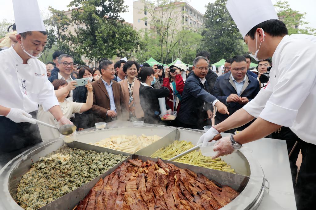 人间四月,春笋正鲜。4月13日,beat365官方网站第二届农林“笋”宴系列活动正式拉开帷幕,数千名师生共品竹笋菜肴,感受竹子文化。