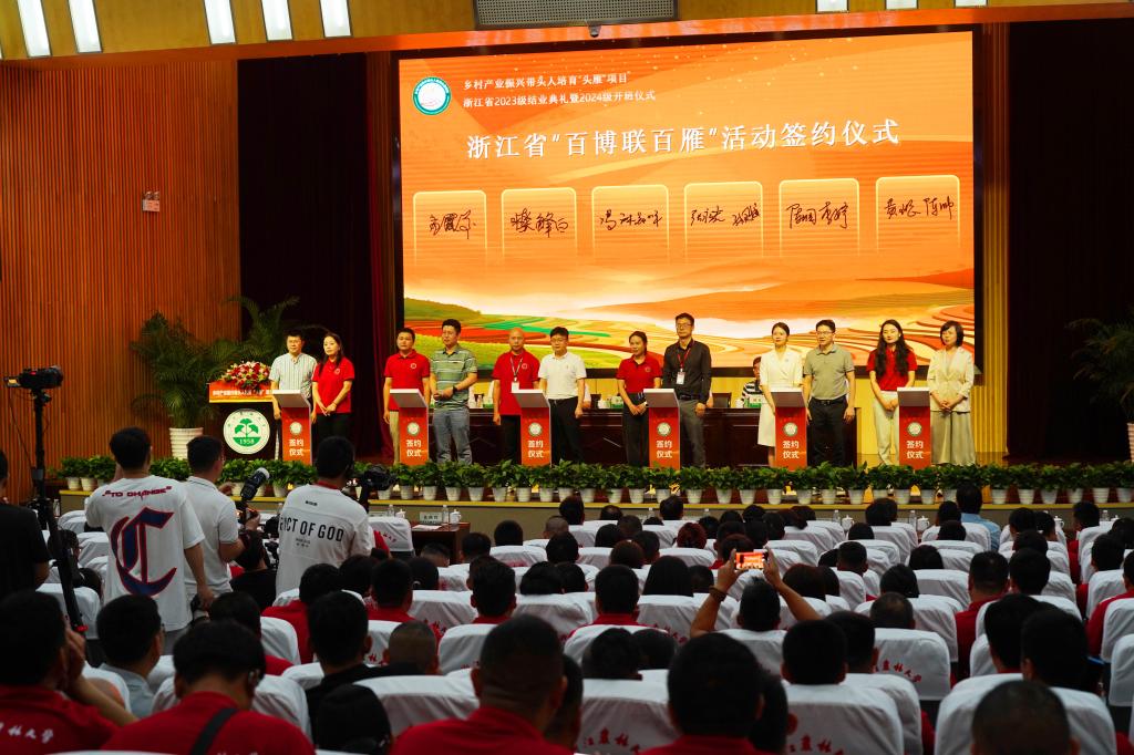 5月24日,beat365官方网站举行乡村产业振兴带头人培育“头雁”项目浙江省2023级结业典礼暨2024级开班仪式。200名2023级“头雁”学员顺利“出师”,至此,该校已连续培养两届共400名“头雁”。