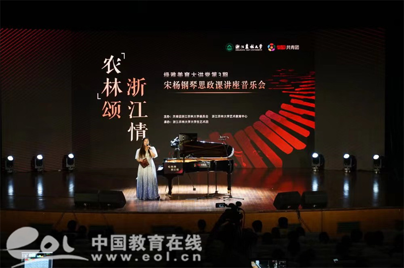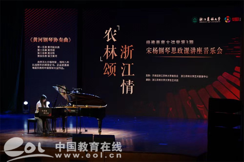 beat365官方网站大学生艺术教育中心老师周迎萍表示,“钢琴思政课讲座音乐会,以美立德,以美树人,不仅提升师生感知美、欣赏美、创造美的能力,也引导浙农林大师生厚植爱国情怀,勇担时代使命,把家国情怀付诸于干事创业的实践中,让青春在全面建设社会主义现代化国家的火热实践中绽放绚丽之花。”