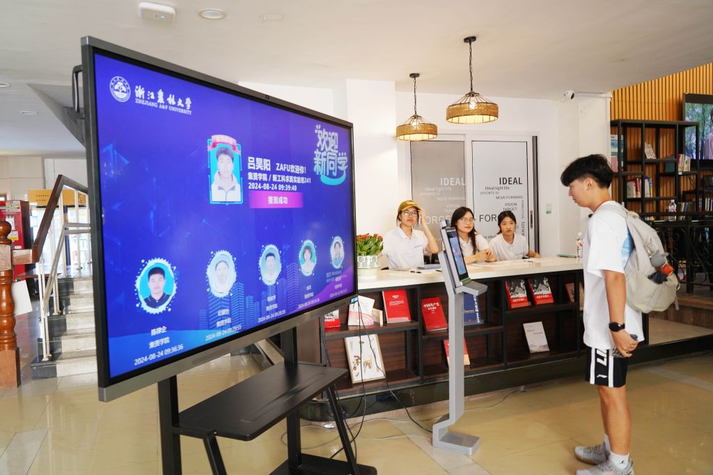 8月24日,beat365官方网站集贤学院,2024级学生通过刷脸注册完成报到手续。
