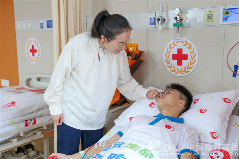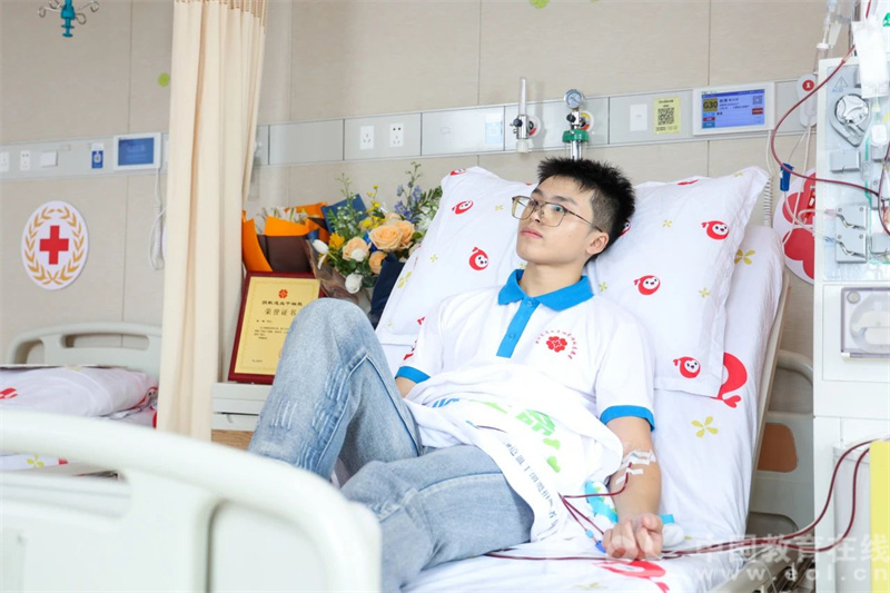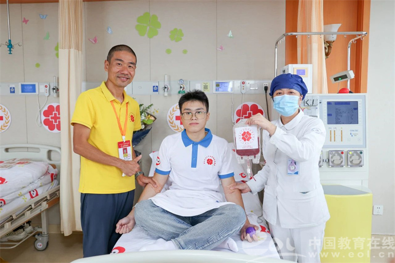 学校的老师,红十字会、医院的医生护士也陪伴在余涛的身边,“整个过程都很安心的,所有的注意事项工作人员都会非常细致地跟我讲清楚。”余涛说,“感觉有一点疲惫时,学校和老师都很关心我,嘱咐我一定要先休息好,我觉得非常感动。”