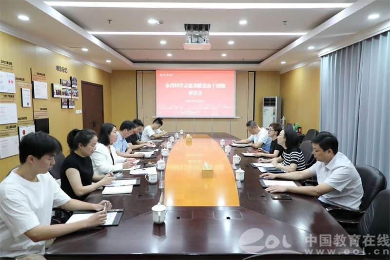 9月23日上午,余涛同学即将出发捐献造血干细胞之前,学校举行了座谈会。校领导对余涛同学的善举表示崇高的敬意和最衷心的感谢,同时鼓励更多的学生参与到社会公益活动中来,做有担当的新时代青年。