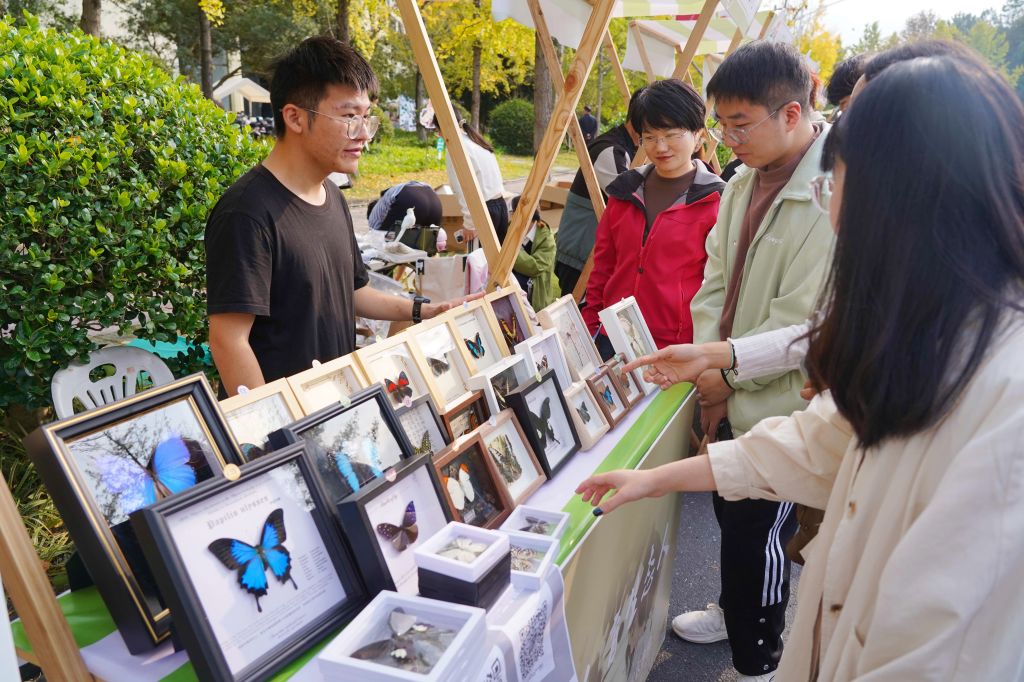 立体人造生态系统、昆虫标本展、宠物义诊、多肉养殖展示、玉米手作工艺品、乡村景观VR自行车、火山爆发小实验……一天的时间里,校园处处都是生态课堂。花车巡游、农林IP&汉服秀、生态时装秀、生态市集等一系列形式活泼、集趣味性与教育性为一体的生态主题活动,吸引了数万名师生及市民。7大版块的166个生态主题展位,以及生态巡游、生态研学、生态闪拍等系列嘉年华活动,给参与者浸润式体验。通过生态+生物、科创、文创、美育、循环、美食、产业等板块的市集活动,引导师生学习生态知识、践行生态行为、传播生态文明理念。