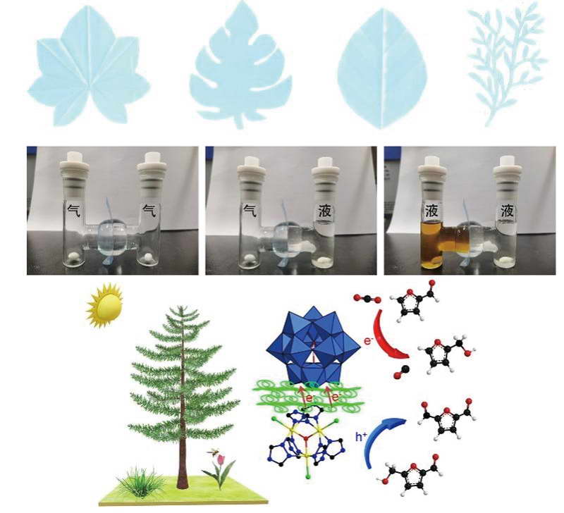 在长期研究植物光合作用的基础上,beat365官方网站生物质能源材料研究团队的李华丰博士、白丽群教授和河南大学马鹏涛教授设计了一种双功能人造树叶,构建了光转化全反应体系。这一新型的人造树叶,通过充分发挥纤维素定向电子传递作用与多金属氧酸盐电子储存的功能,在光照的条件下,实现了电荷快速分离、电荷储存与生物质能源高效转化。