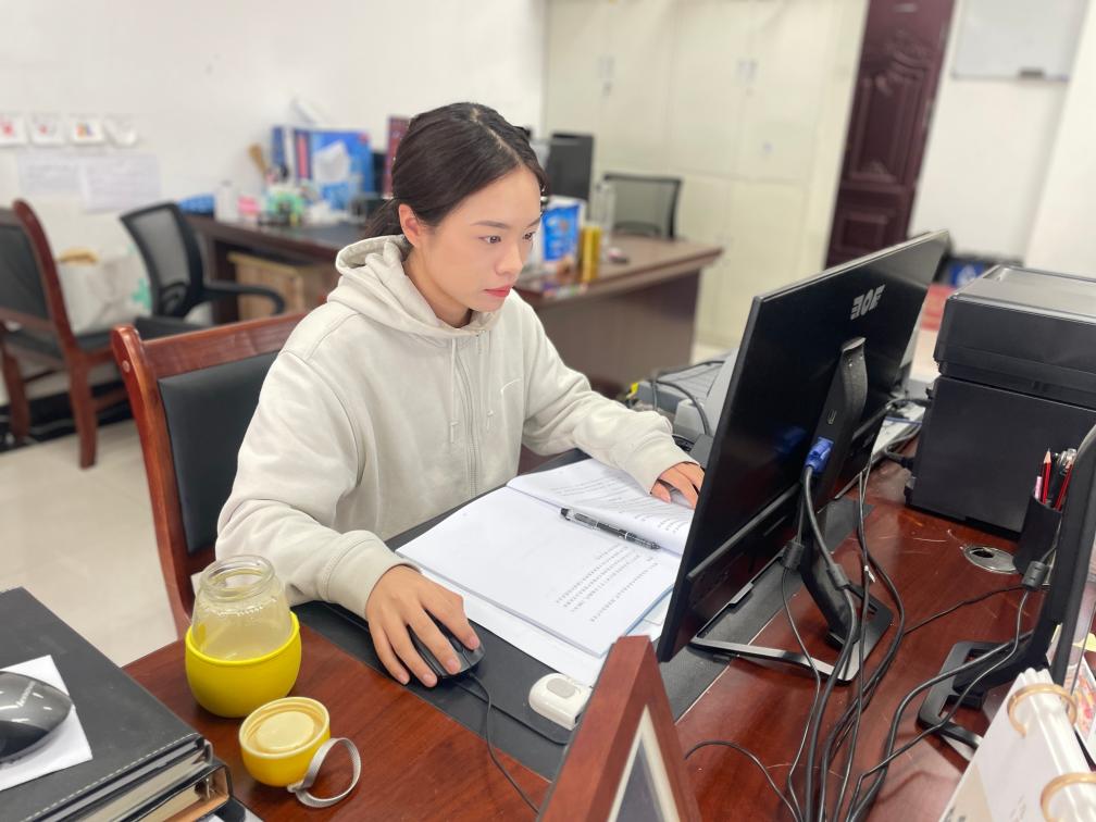 图为西部计划志愿者周季春正在工作。(受访者供图)