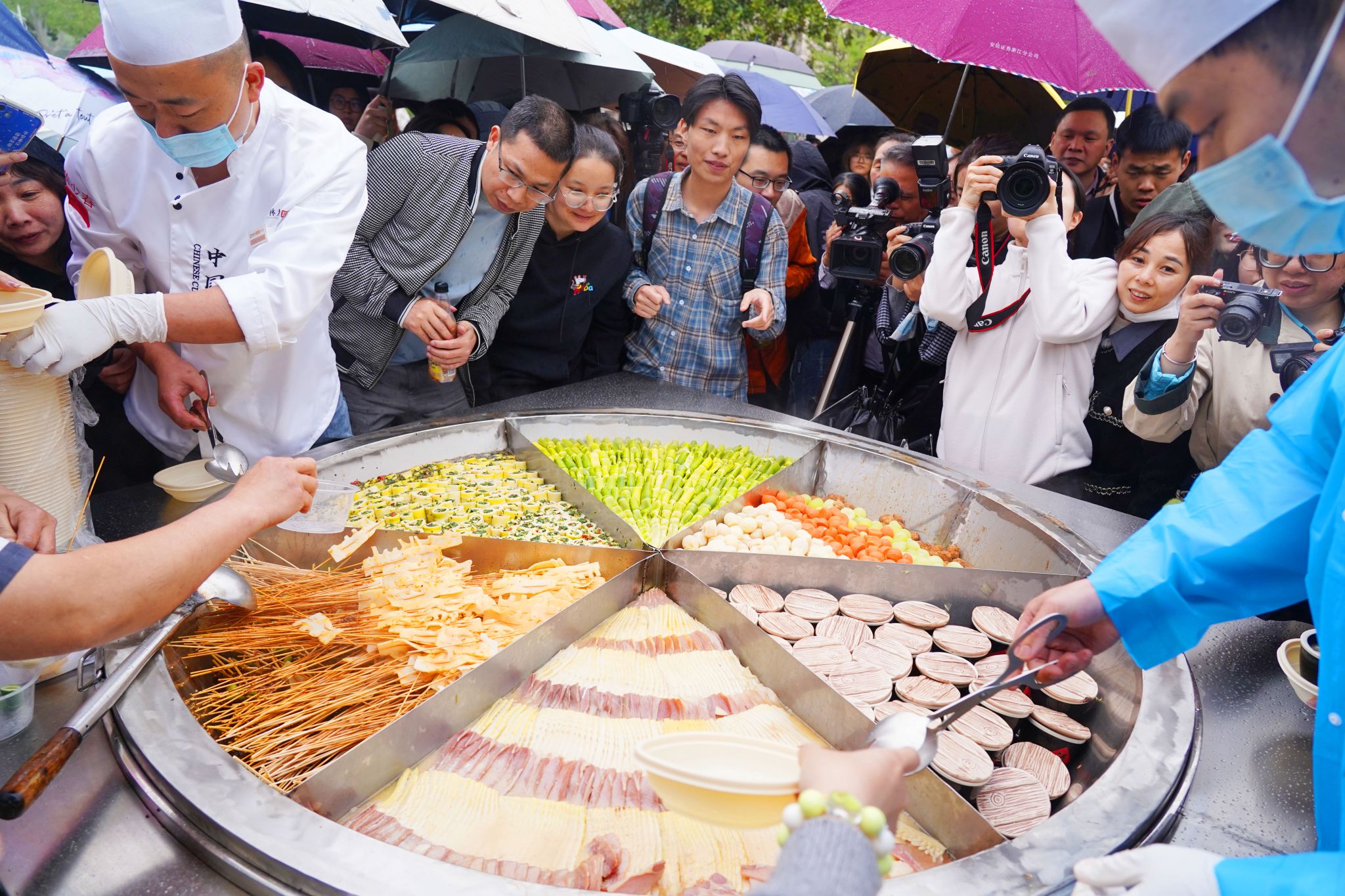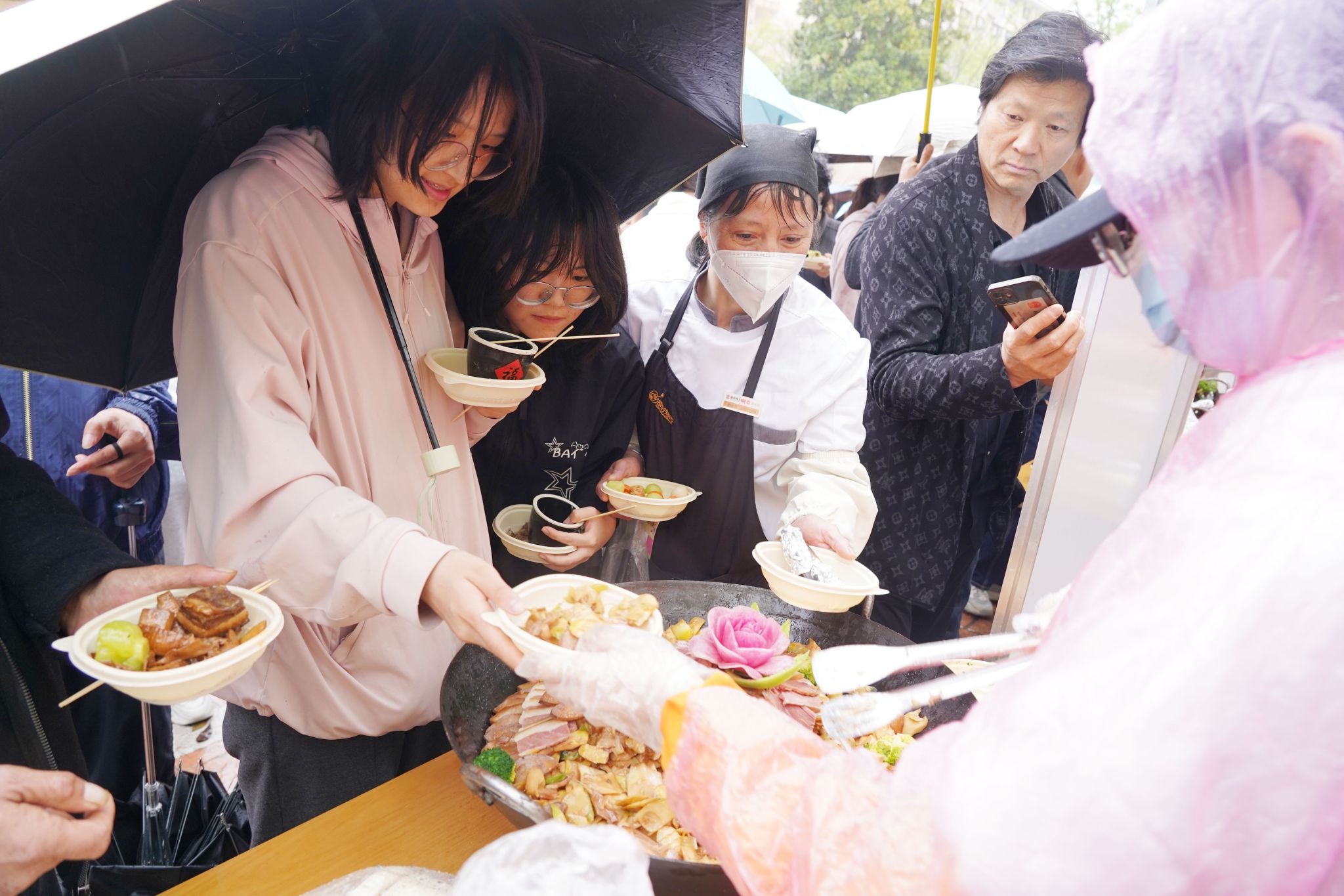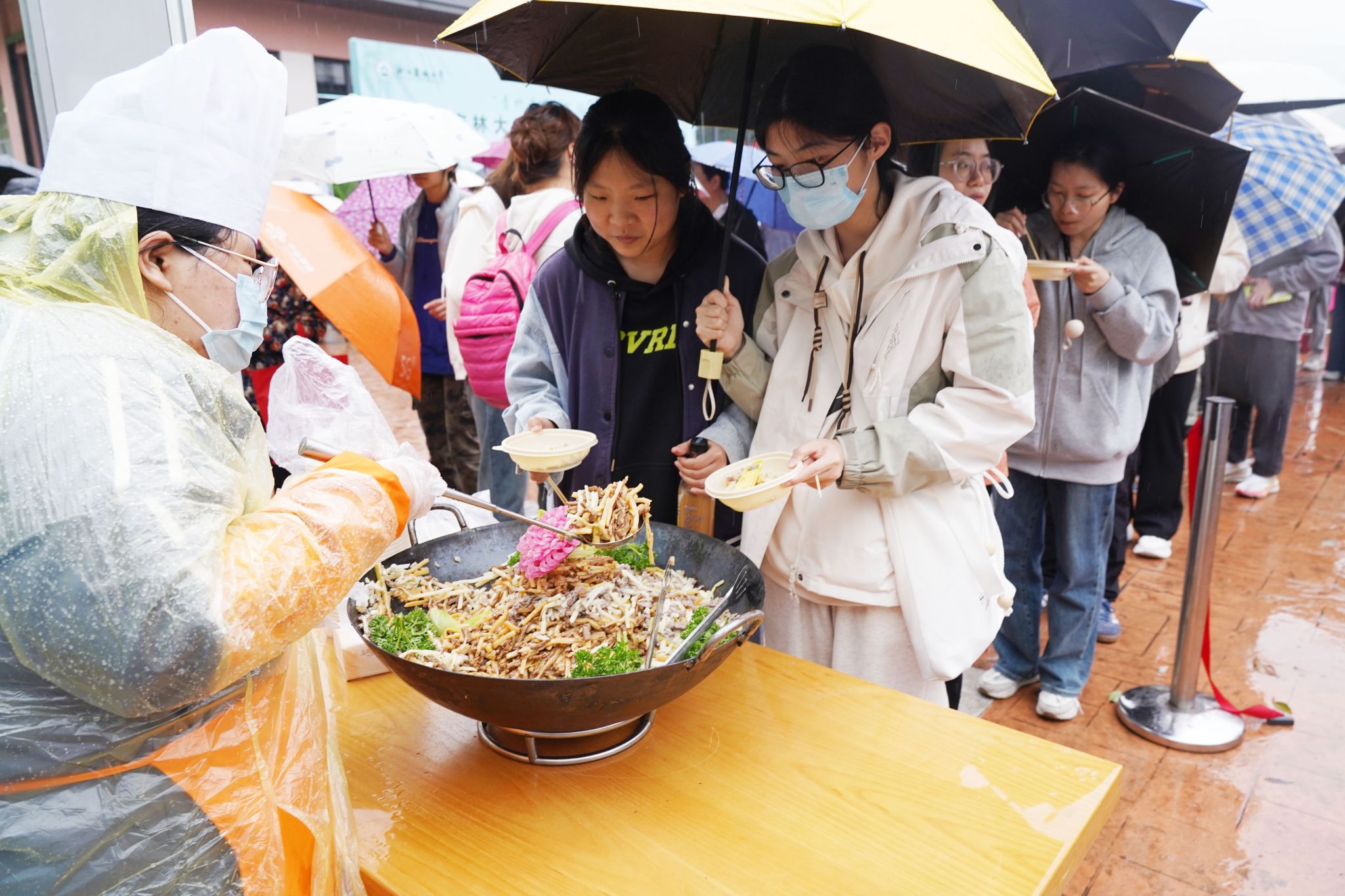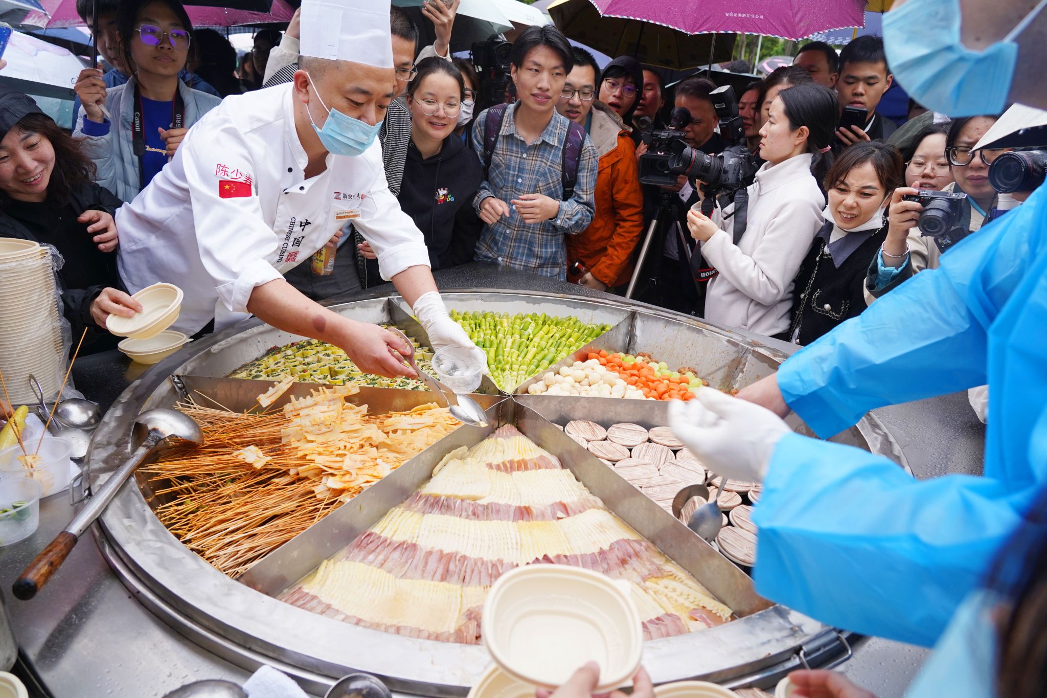 随着铁锅的盖子缓缓被掀起,浓郁的鲜香引得排队的师生垂涎欲滴,千名师生人手一份,共同品尝刚刚出锅的6道竹笋菜肴。接着,数千名师生在这里参与剥笋比赛,学烧不同口味的笋菜,品尝各种竹笋佳肴,体验竹子领域的最新科技成果,欣赏竹材设计的工艺品,感受竹诗词、竹音乐等竹文化。