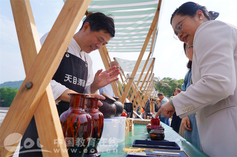 活动现场,国家级非遗大师樊生华的亲传弟子张艺乘,展示了作为00后青年炒茶王的精湛技艺;九曲红梅省级非遗传承人冯赞玉大师的孙女冯晨影,带来了九曲红梅和西湖龙井的制作技艺;青柯鸟笼省级非遗传承人江红星,展示的鸟笼精妙绝伦;曾登上亚运会开幕式的临安非遗水龙表演,赢得观众阵阵叫好声……30多位非遗传承人,以“活态非遗博物馆”的形式展示了茶类制作技艺等非遗项目,展现了新时代非遗的生命力。