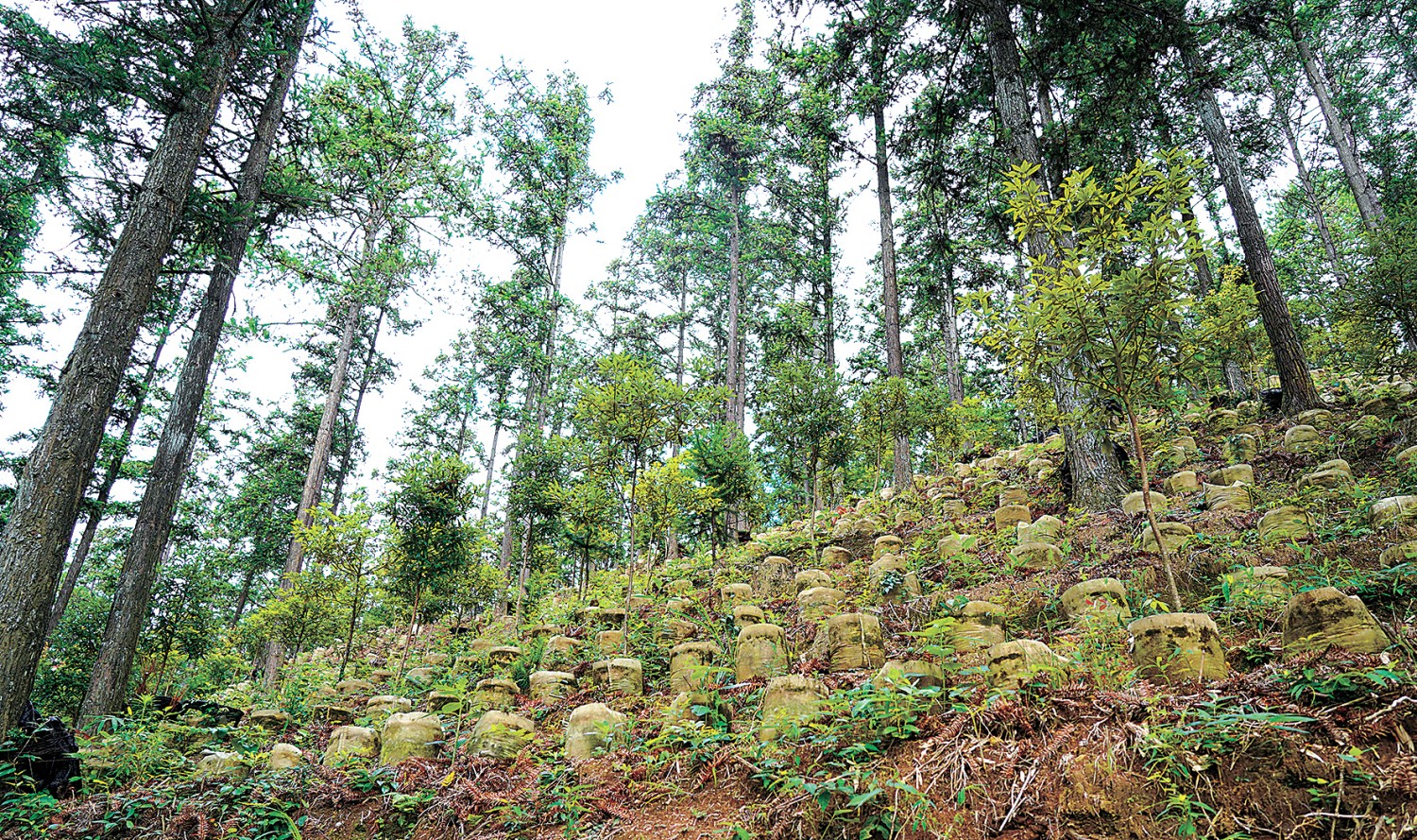 经过多年研究,童再康团队创建了“遮阴育苗+透光造林”技术模式,即培育2年生容器楠木大苗,将15—25年的杉木林疏伐至每亩30—60株,在杉木林下种植楠木,并以定制肥进行3年的精细化抚育。