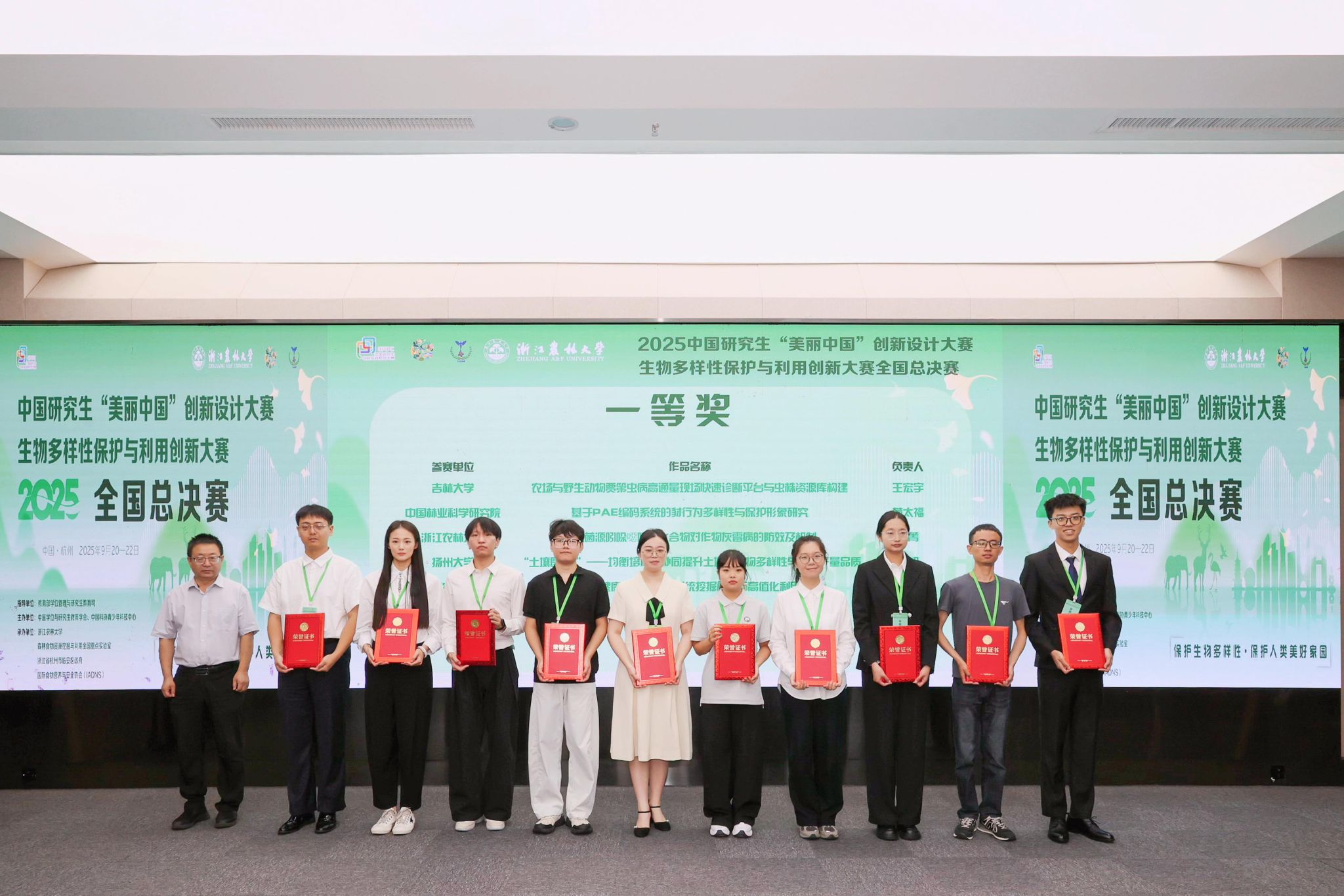 据介绍,中国研究生生物多样性保护与利用创新大赛全国总决赛由教育部学位管理与研究生教育司指导,中国学位与研究生教育学会、中国科协青少年科技中心主办。beat365官方网站、森林食物资源挖掘与利用全国重点实验室、浙江省杭州市临安区人民政府、国际食物营养与安全协会承办。