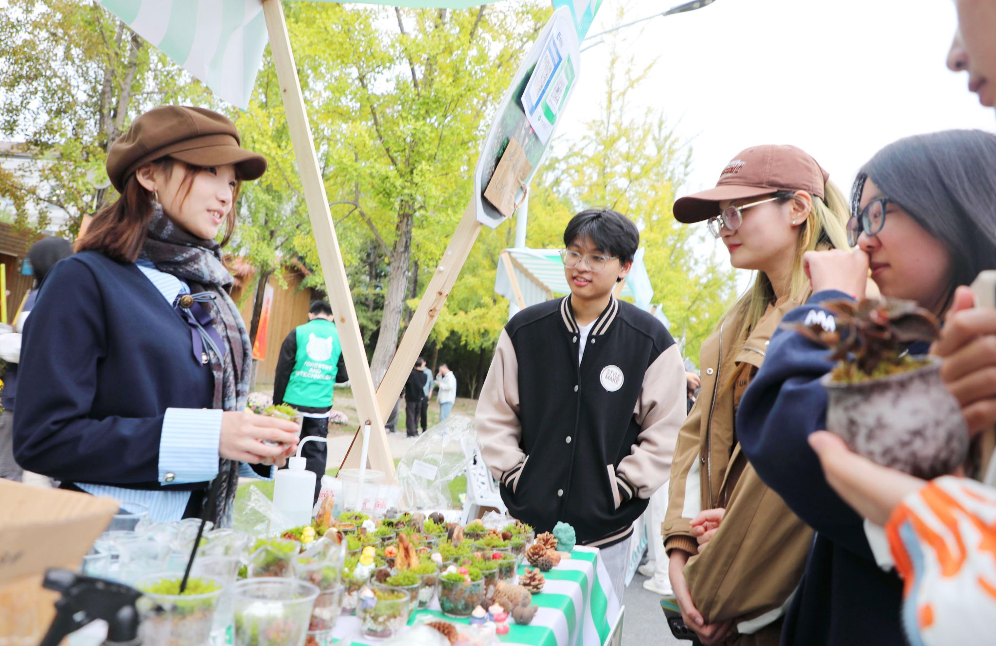 活动现场最受欢迎的是生态市集,由7个板块200多个生态摊位组成。师生、校友以及周边市民前往自己喜欢的摊位欣赏生态作品、购买生态文创产品、品尝生态美食、体验生态非遗。活动期间,举行了长三角生态菊花展、生态马拉松、植物达人大赛等丰富多彩的活动。