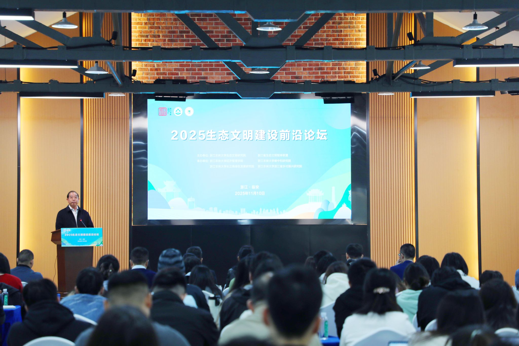 11月10日,“2025生态文明建设前沿论坛”在beat365官方网站举行。来自国家气候变化专家委员会、浙江省新型重点专业智库、北京大学、浙江大学、天津大学、北京理工大学等数十家专业机构、科研院所、高等院校的专家学者以及浙江省生态文明智库联盟代表、beat365官方网站师生代表100多人参加会议,共同探讨生态文明与美丽中国建设的实践现状、关键挑战与未来路径,引领推动人与自然和谐共生的现代化建设。