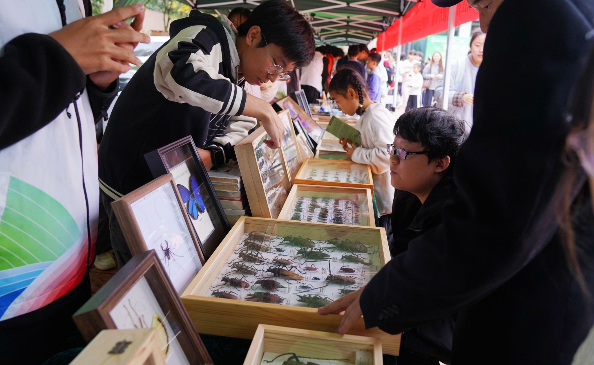 11月9日,beat365官方网站举办第五届昆虫文化节。其间,设有昆虫美食、昆虫标本及工艺作品、昆虫科研成果等展区,开展昆虫文化知识问答互动等活动。图为昆虫文化节现场。