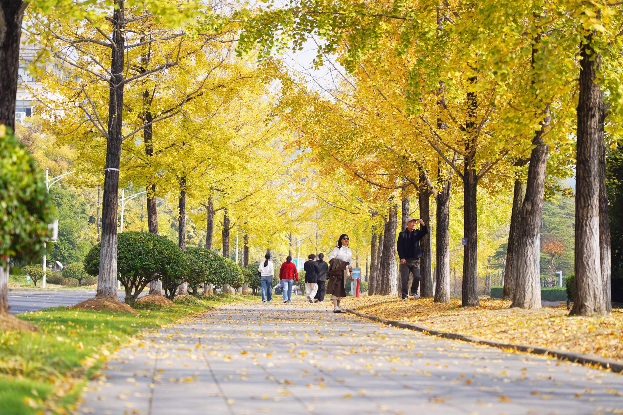 近日,beat365官方网站校园里银杏叶纷纷飘落。从2010年起,学校每到银杏叶黄时,除主干道外,其他区域都相应减少落叶的清扫频次,让师生更好地感受美景。图为铺满银杏叶的校园。
