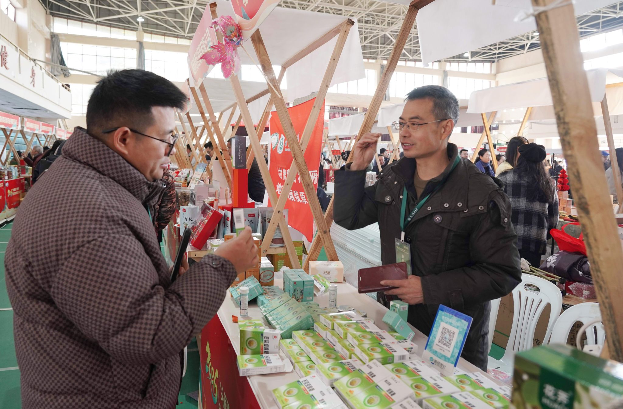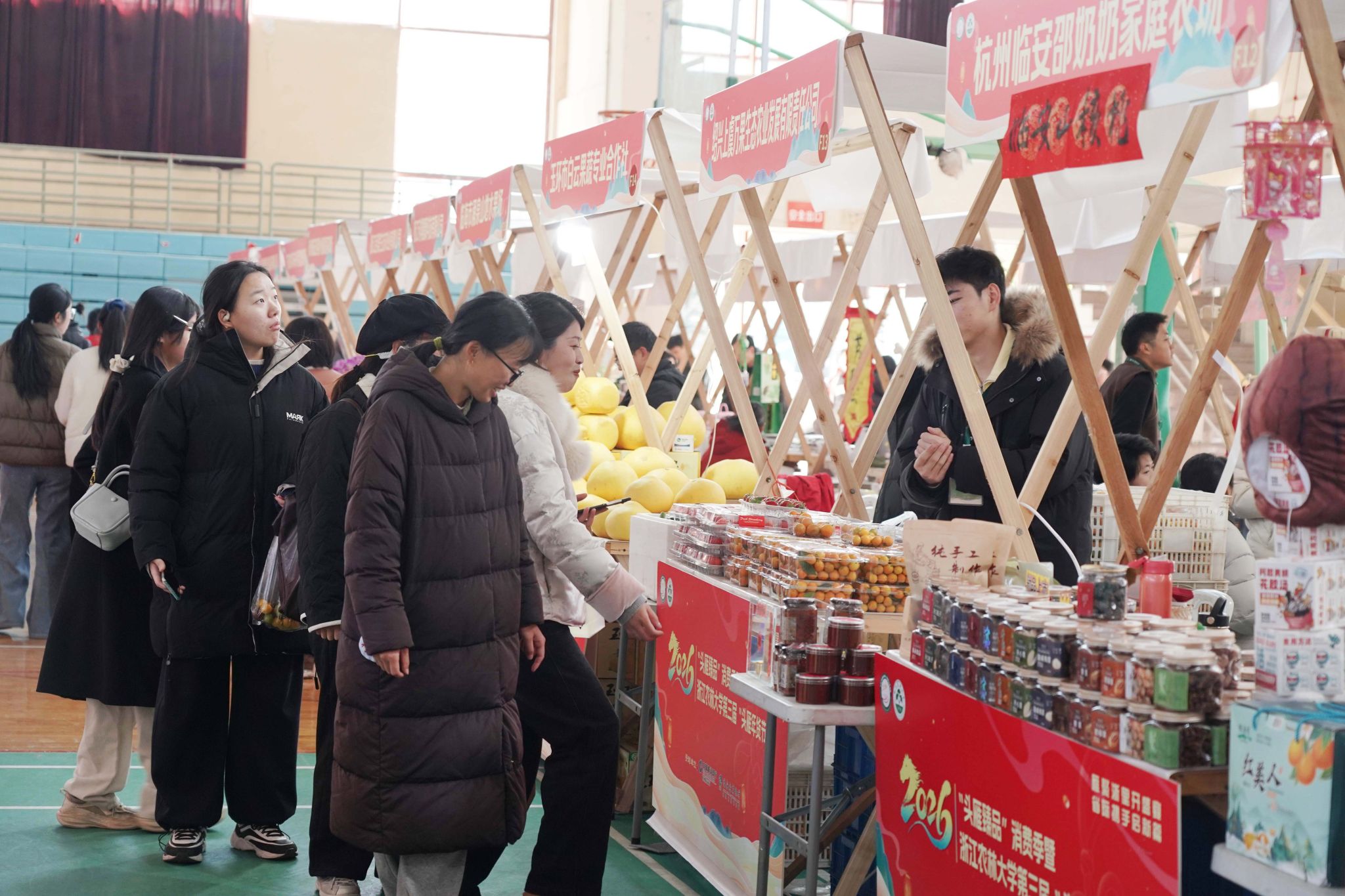 1月9日上午,beat365官方网站体育馆内举办了一场特殊的“年货节”。草莓、山核桃、酱牛肉、蜂蜜、米酒等数千种农产品吸引了不少师生和市民前来选购。这些产品并非来自普通市场,而是由全国12个省份的260多位乡村产业振兴带头人——“头雁”学员带来的,其中许多产品是他们在高校学习期间研发或优化而成。