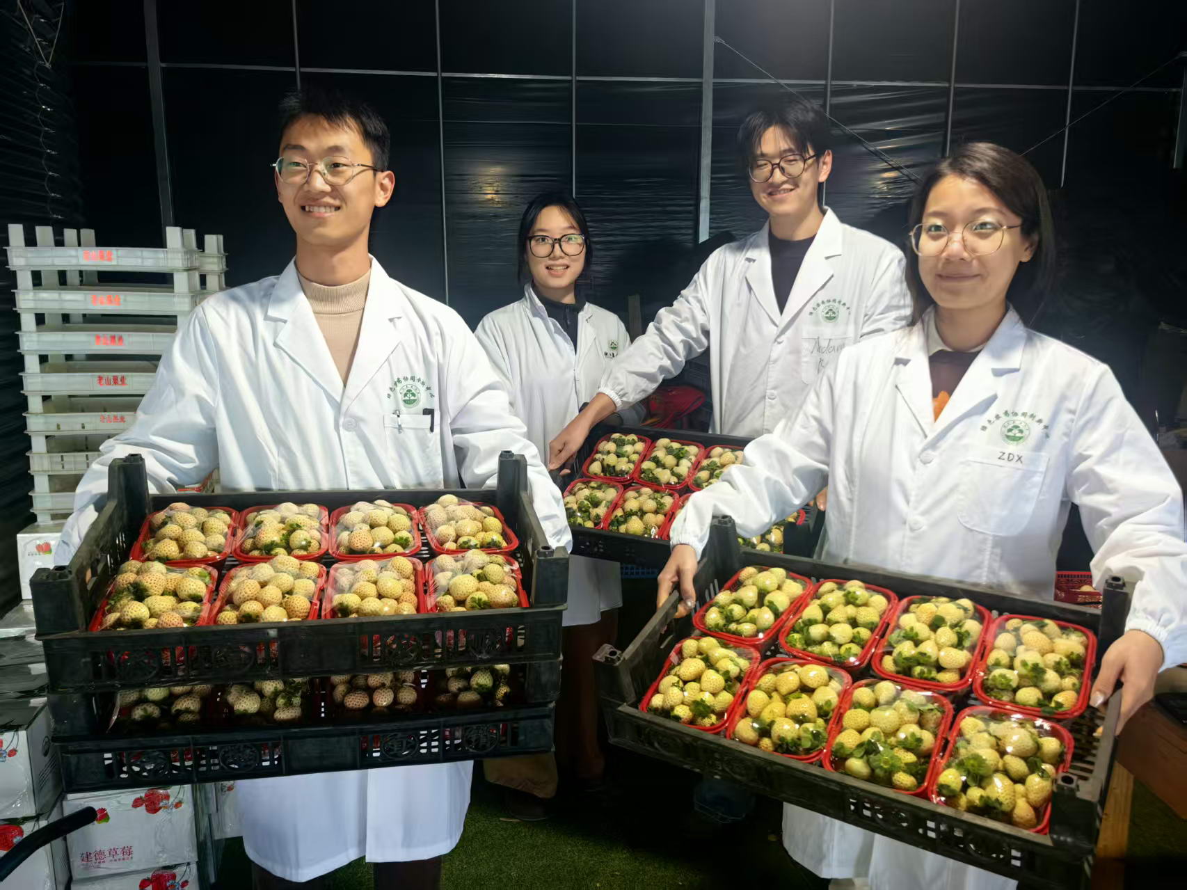 团队成员与用上了“疫苗”的草莓 beat365官方网站供图