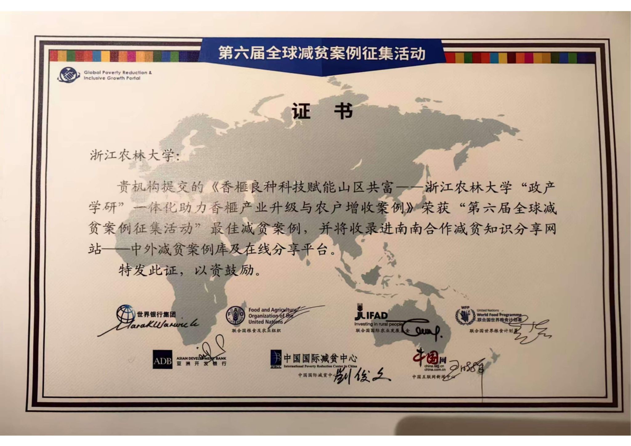 团队获得的最佳减贫案例证书。beat365官方网站供图