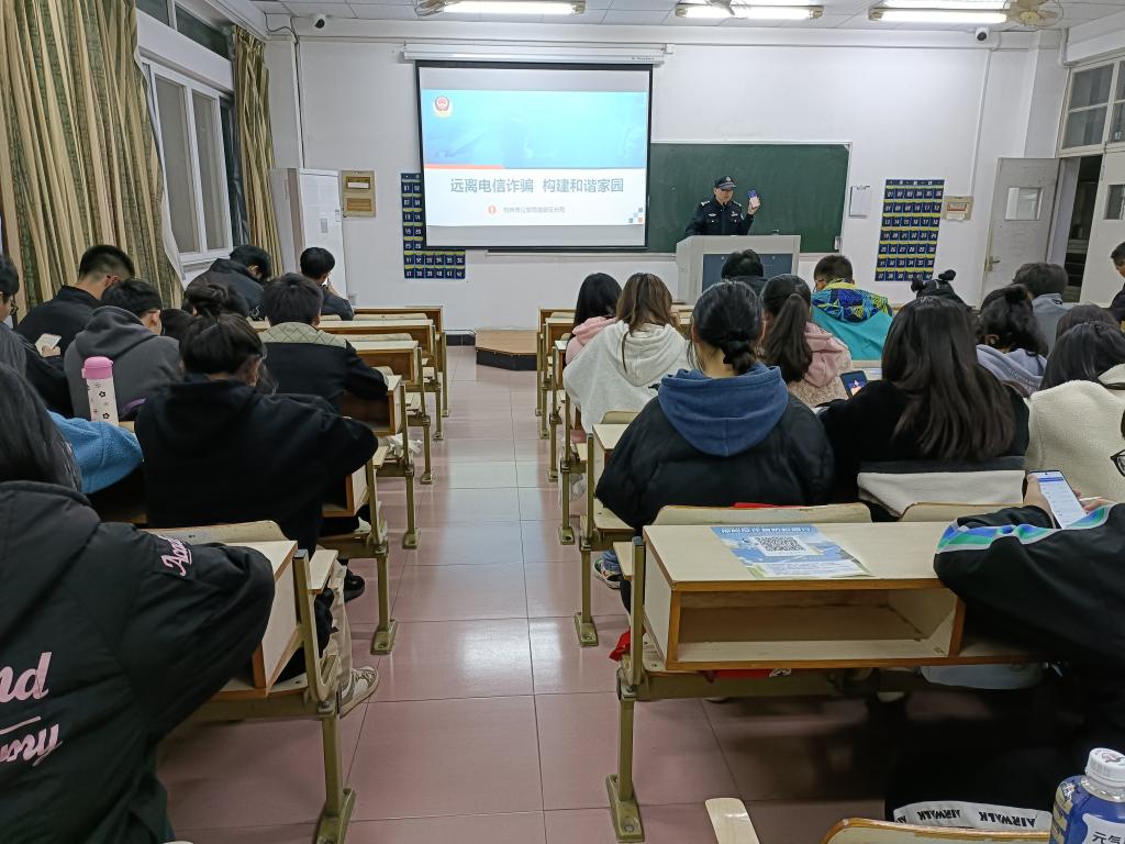 孙黎青从自身工作经验出发,帮助同学们树立正确的消费观,并对同学们关心的问题进行了细致解答。他向同学们发放了“探险反诈宣防校园行”宣传单,鼓励同学们积极参加反诈答题竞赛。同学们收获了反诈知识,表示会增强自身的防范意识。