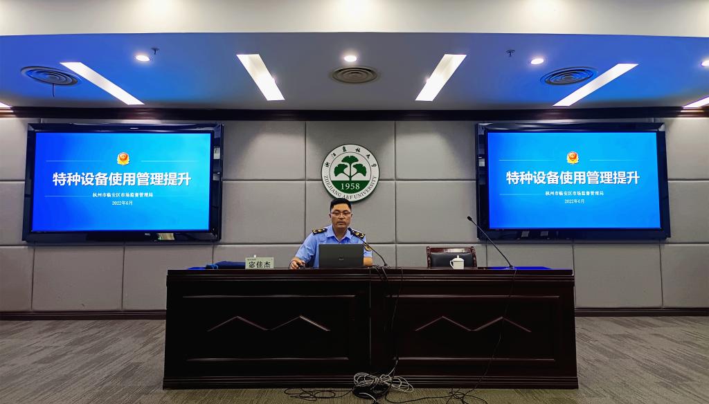 临安区市场监管局特监科二级主任科员宓佳杰作“特种设备管理制度和法律责任讲解”的主题讲座。宓佳杰结合自身多年的特种设备监管工作经验,从特种设备安全管理构架、法律体系、使用登记、管理人员职责要求等方面,为师生做了生动详实的阐述。在“压力容器安全管理与操作”的主题讲座中,杭州市特种设备检测研究院安全工程师俞新宇从压力容器基础知识、管理基本要素、安全操作规范、操作人员要求、设备维护保养等方面进行了图文并茂的讲解,同时提出了beat365官网压力容器管理过程中存在的问题与整改建议。