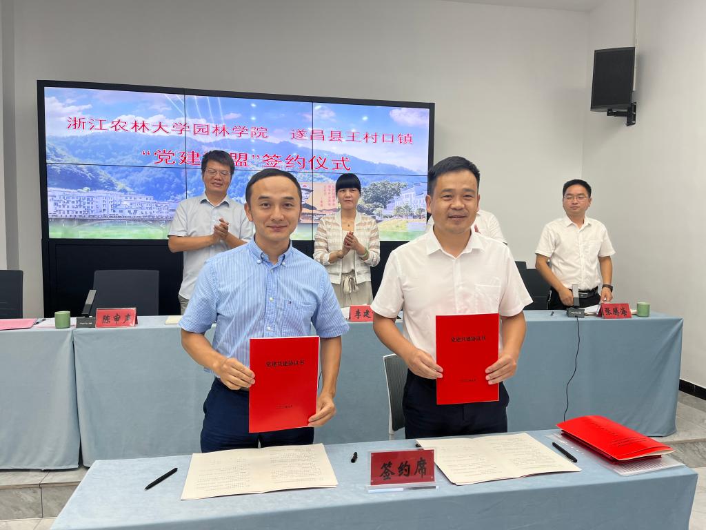 8月16日,园林学院与遂昌县王村口镇“党建联盟”签约仪式在王村口镇举行。遂昌县政协副主席李建霞、校地共建专班负责人严少君出席并讲话。园林学院院长赵宏波、党委书记陈审声,王村口镇党委书记毛雄华等出席签约仪式。签约仪式由王村口镇镇长张腾海主持。