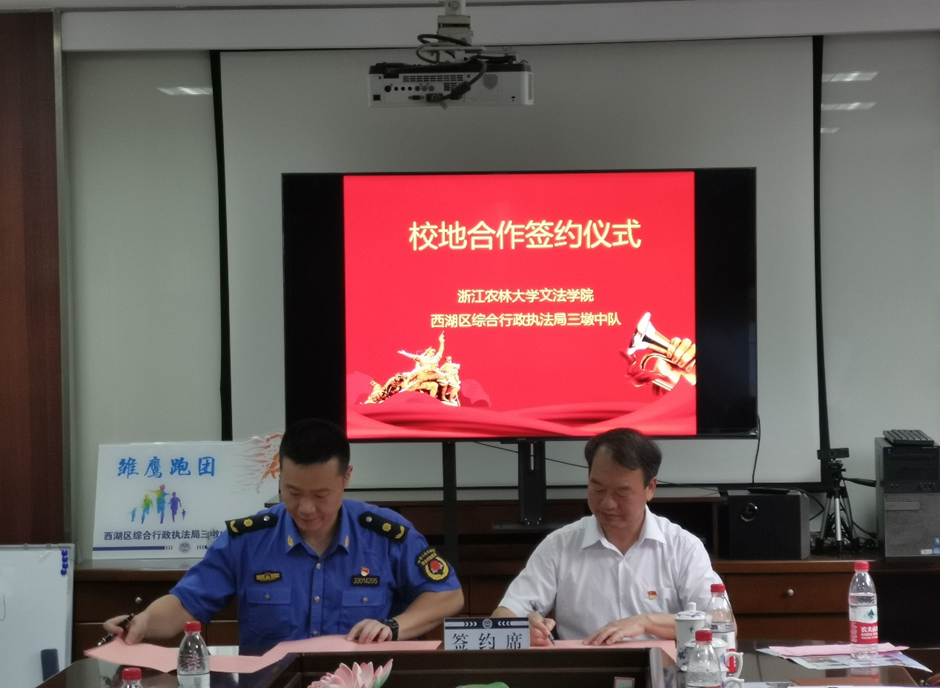会上,朱红东书记介绍了文法学院基本概况、公共管理学科特色与教育成果,就双方加强合作提出建设性意见。三墩中队有关负责人介绍了中队基本情况,对双方深化合作提出具体设想。随后,双方签署《合作共建协议书》《党建共建协议书》,共同揭牌“beat365官方网站文法学院教学实践基地”,并互聘了指导教师、挂职干部。