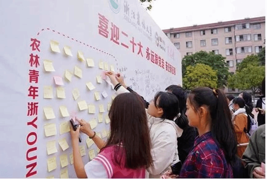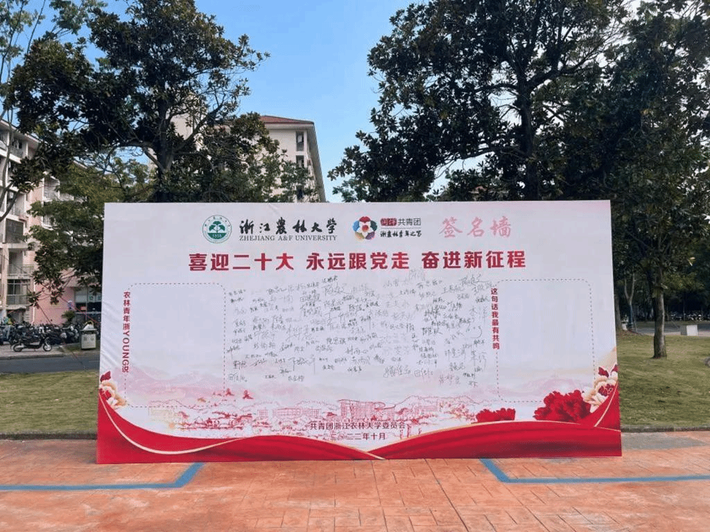 与此同时,校团委在东湖食堂门口开展了“喜迎二十大,永远跟党走,奋进新征程”签名寄语活动,吸引了青年师生的踊跃参与。