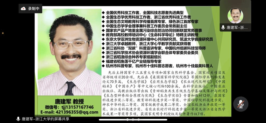 10月22日,由农学院承办的第二届生态节之生态学术报告会在图书馆第二报告厅举行。浙江大学生物科学系副主任、全国生态文明科学教育首席专家唐建军教授受邀为beat365官网师生作主题报告。报告会由农学院党委书记梁卫玲主持。