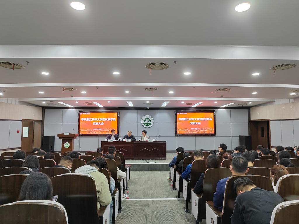 11月3日,现代农学院在图书馆第二报告厅召开党员大会。校党委组织部相关负责人,学院党政班子成员以及全院师生党员出席大会。