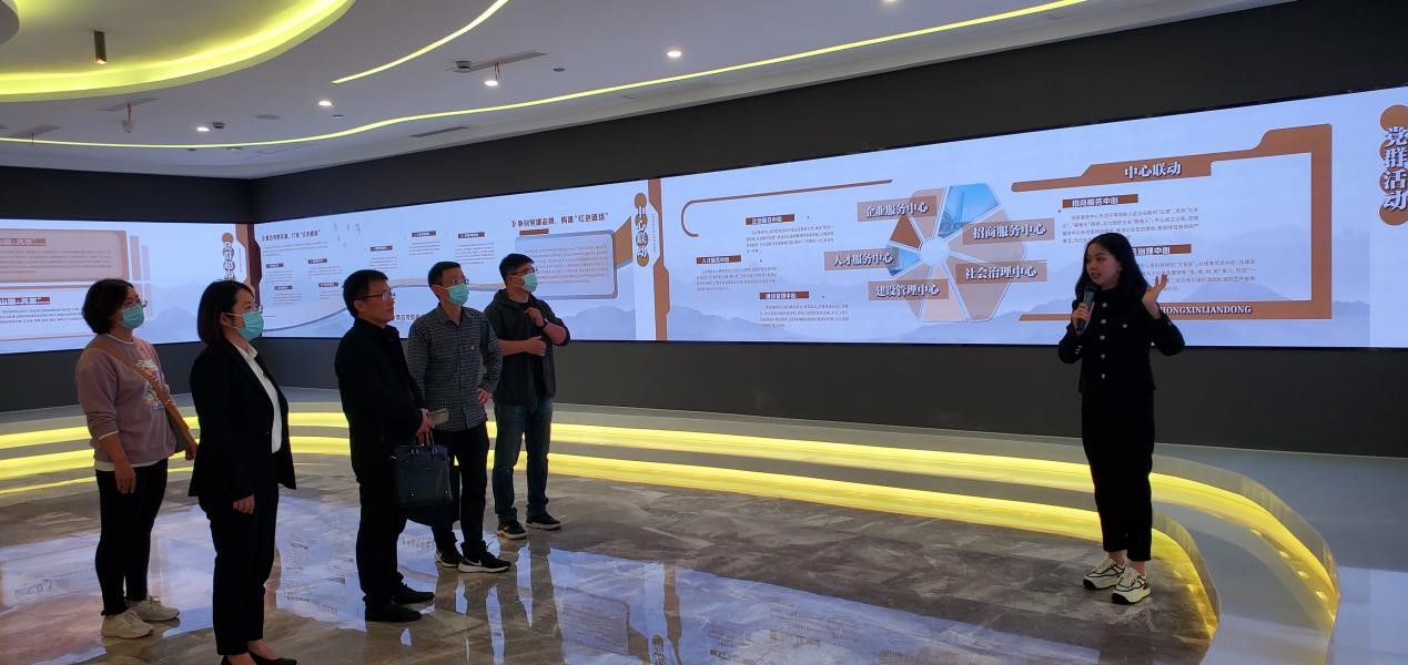在智慧党建墙前,党员们认真听取了中心工作人员的情况介绍。中心建设了“山湖”青锋智慧党建平台,通过与企业服务中心、招商服务中心、人才服务中心、建设管理中心和社会治理中心等联动,构建了“成长蓝”、“党建红”、“公益绿”、“活力橙”、“幸福粉”的工作服务体系,实现服务园区、社区党建“共建、共享、共富”。中心分设智慧云馆、积分超市、城市书屋、社团创享等10余个“功能区”,引入智能导服、沉浸体验,在“声”“光”“电”“味”的现代展示方式中,突出党建工作的时代特色,智慧化、互动性、科技感十足。