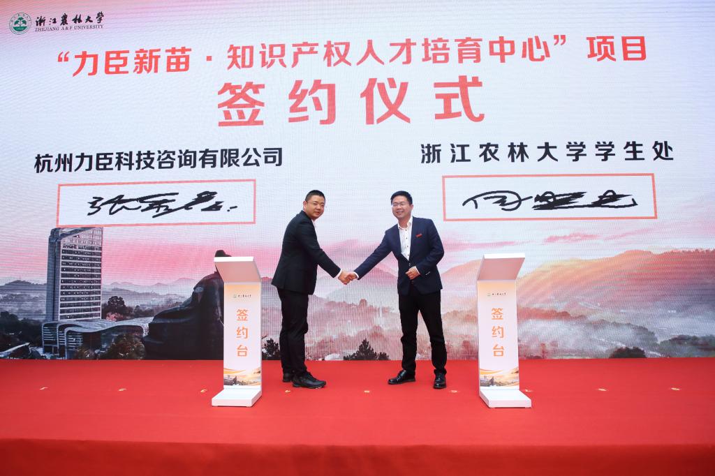 会议举行“力臣新苗·知识产权人才培育中心”项目签约仪式,该仪式是杭州力臣科技咨询有限公司与beat365官网深化产教融合、共同探索人才联合培养、就业定向输送的一种新模式。