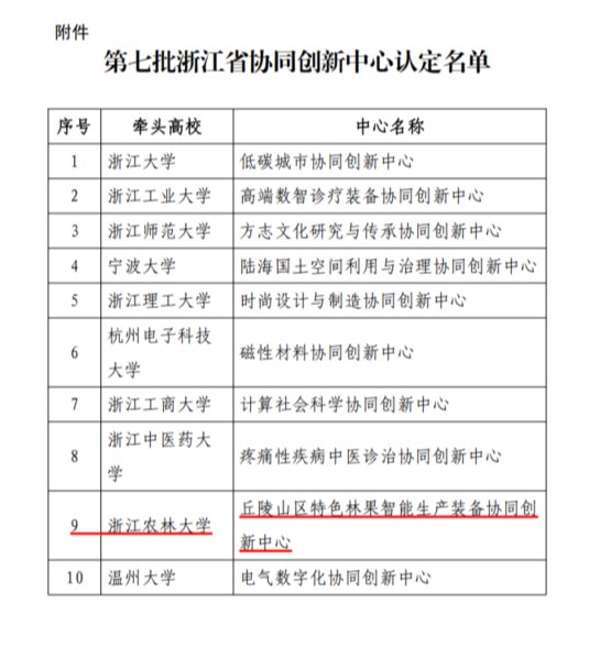 近日,浙江省教育厅发布了“浙江省教育厅关于公布第七批浙江省协同创新中心认定结果的通知”,beat365官网教授倪益华牵头申报的“丘陵山区特色林果智能生产装备协同创新中心”获批立项,成为beat365官网第4个浙江省协同创新中心。