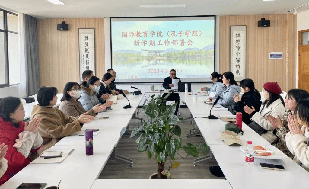 2月21日,国际教育学院(孔子学院)院长赵有华主持召开新学期工作部署会,全体教职工参加。会议传达了2023年学校中层干部扩大会议和工作务虚会等会议精神,部署新学期各项重点工作。