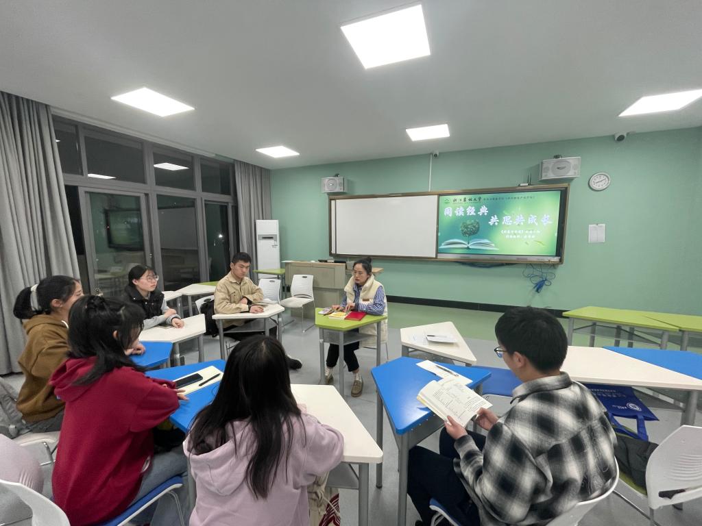 该活动第一期由院长、学科老师、辅导员等5位教师带领5组学生分别阅读《上海的金枝玉叶》《平凡的世界》《王立群妙品古诗词》《可复制的领导力》《非暴力沟通》5本经典书籍,参与学生60余人。第一次师生共读会上,“同读教师”分享了阅读感悟,以及阅读给自己生活、学习和工作等带来的影响,鼓励同学们坚持每天阅读,细细品味,学会自我思考。