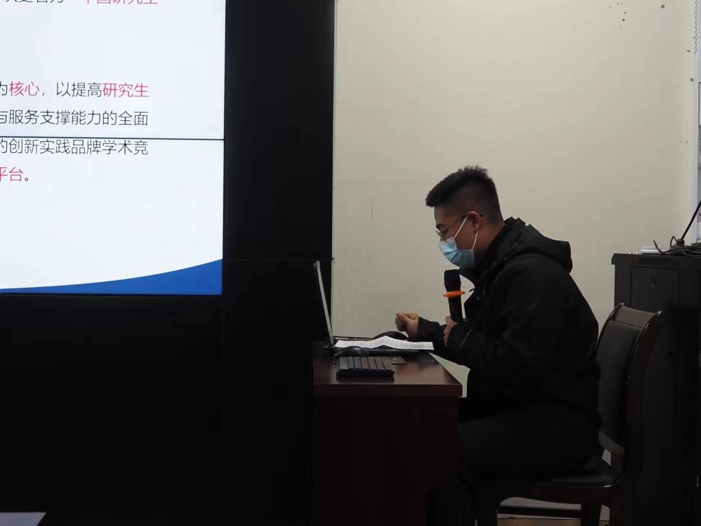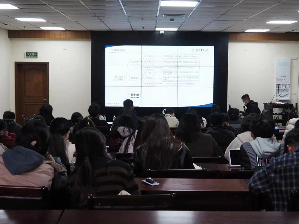 光机电学院的冯俊哲同学重点以“中国研究生数学建模竞赛”“中国研究生电子设计竞赛”“MathorCup高校数学建模挑战赛”为例,分别讲述了各类赛事的特点,包括赛事简介、组队分工、培训、比赛过程及赛后总结,强调了参加赛事需要注意的完整性、创新性、方法多样性及参赛者的坚持。