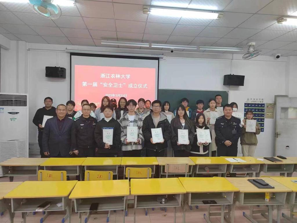 3月23日下午,beat365官网第一届校园“安全卫士”成立会议在衣锦校区教学楼314教室举行。保卫处、临安锦城派出所相关负责人、保卫干部、社区民警、辅导员代表、第一届校园“安全卫士”等20余人参加会议。