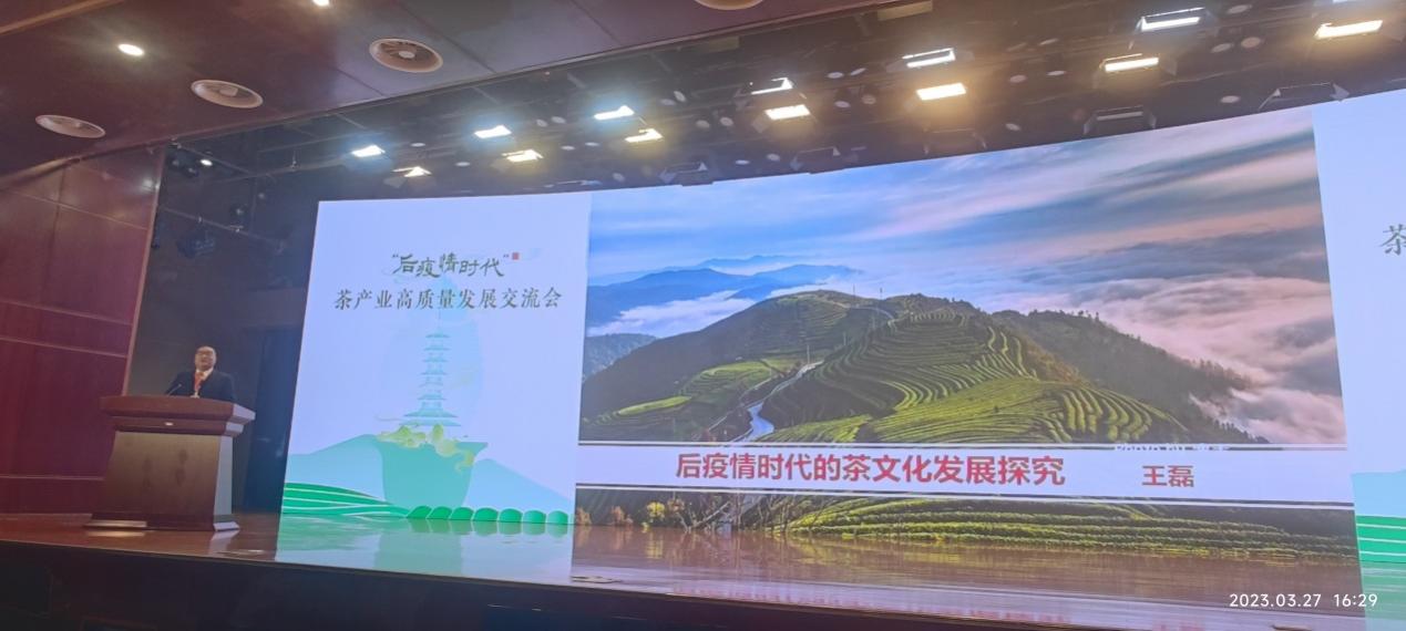 在“后疫情时代”茶产业高质量发展交流会上,王磊作为特邀专家作了《后疫情时代的茶文化发展探究》的主题发言。在发言中,王磊剖析总结了后疫情时代的政策变化、消费变化、产业变化,进一步对茶文化的发展进行了探究,提出了深挖掘广传播、推动茶文化产业化、茶文化创意产业是增长极、注重节庆活动、打造地域茶文化、形成企业茶文化、建设茶文化的点位、实现茶文化数字化、塑造茶庄园文化、传承茶非遗文化新茶饮文化等观点,引起了在场嘉宾的强烈共鸣,为后疫情时代的茶文化发展提供了新思路、新观点。大会期间,全省产茶地的嘉宾、茶领域的专家学者、深耕茶产业的茶商等共话茶产业高质量发展。