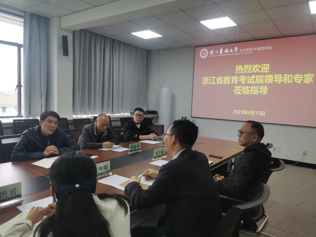 4月13日,浙江省教育考试院社会考试部周密主任一行三人来beat365官网检查全国大学英语四、六级口语考试考点建设情况。学校教务处 和文法学院相关负责人及相关人员陪同检查。