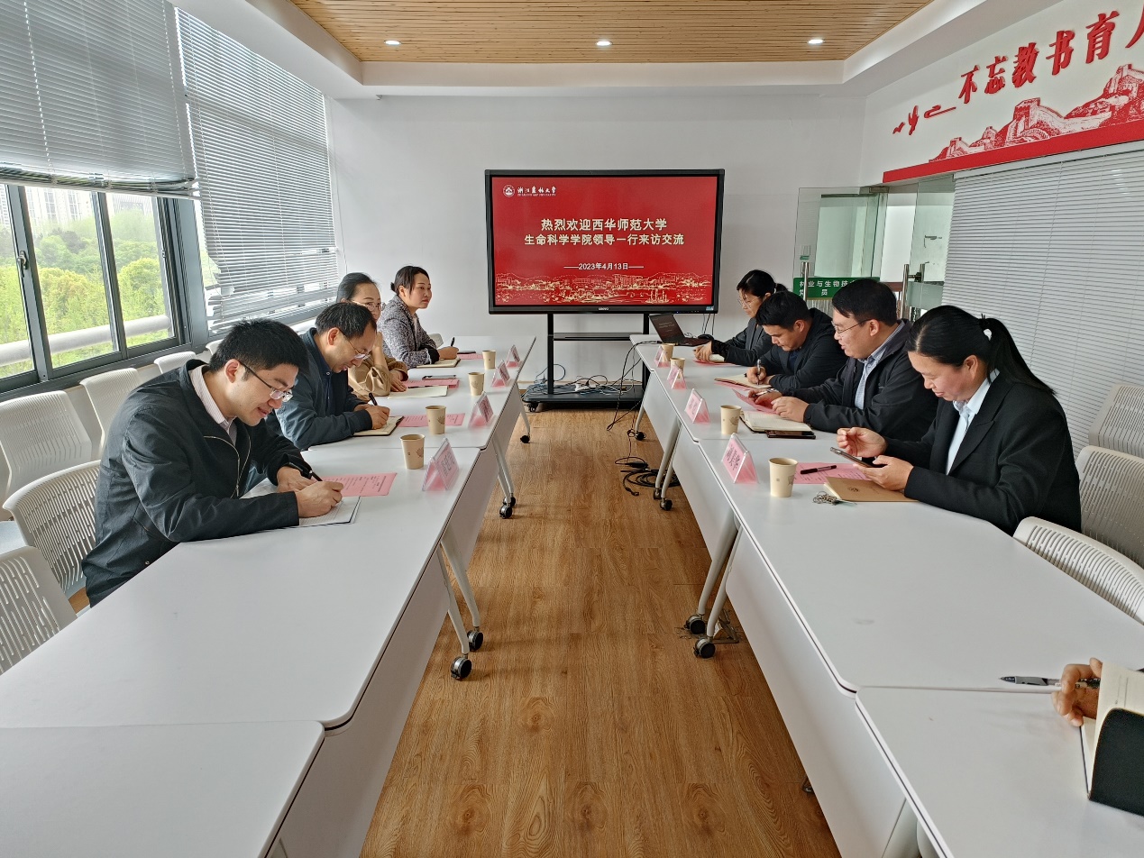 4月13日,西华师范大学生命科学学院甘小洪一行来林生院调研交流,林生院相关负责人参加了本次交流会。