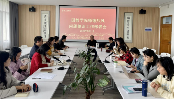 5月11日,国际教育学院(孔子学院)院长赵有华主持召开师德师风问题整治工作部署专题会,全体教职工参加。