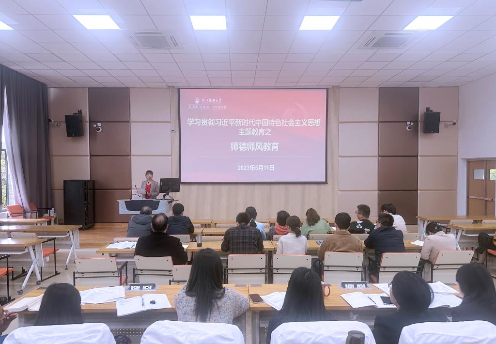 5月11日下午,动科动医学院在学2-201举行学习贯彻习近平新时代中国特色社会主义思想主题教育之师德师风专题教育学习会,并宣讲了热点财经政策,强化财务报销与经费使用规范。全院教职工参加会议,会议由学院党委书记苏小菱主持。