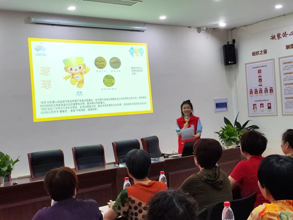 活动当晚,“雷锋班”的志愿者们走进锦城街道西瓜社区、锦北街道平山社区,为社区居民讲解亚运知识、观赛礼仪等。活动中,宣讲队志愿者和社区的员工、居民积极互动。